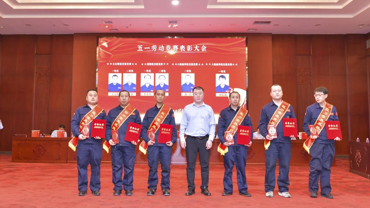 會議表彰了榮獲先進工作者、在競賽過程中成績優(yōu)異者,與會領(lǐng)導(dǎo)為獲獎職工頒獎。
